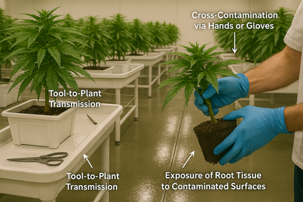 Planting and transplanting represent critical control points in a cannabis IPM program. These are the moments when plants are most vulnerable: root systems are exposed, tissues are easily damaged, and any introduced pathogen can rapidly colonize a new container, media, or irrigation zone.