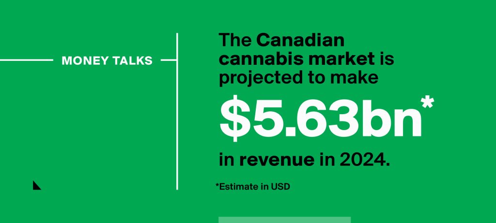 Why Canada? To put it simply, Canada, as an agricultural market, is, well … huge. Canada is one of the world’s largest exporters of food, and in 2023, it exported nearly $99.1 billion in agricultural products. Farms cover 62.2 million hectares, or 6.2%, of Canada’s land area; the average farm size has almost doubled over the last 50 years due to consolidation and technological advances, including indoor growing facilities. When you zoom into how that relates to cannabis cultivation, revenue in the cannabis market in Canada is projected to reach US$5.63bn in 2024, and it’s expected to show an annual growth rate of 3.17%, resulting in a market volume of US$6.58bn by 2029. That’s a lot of weed.